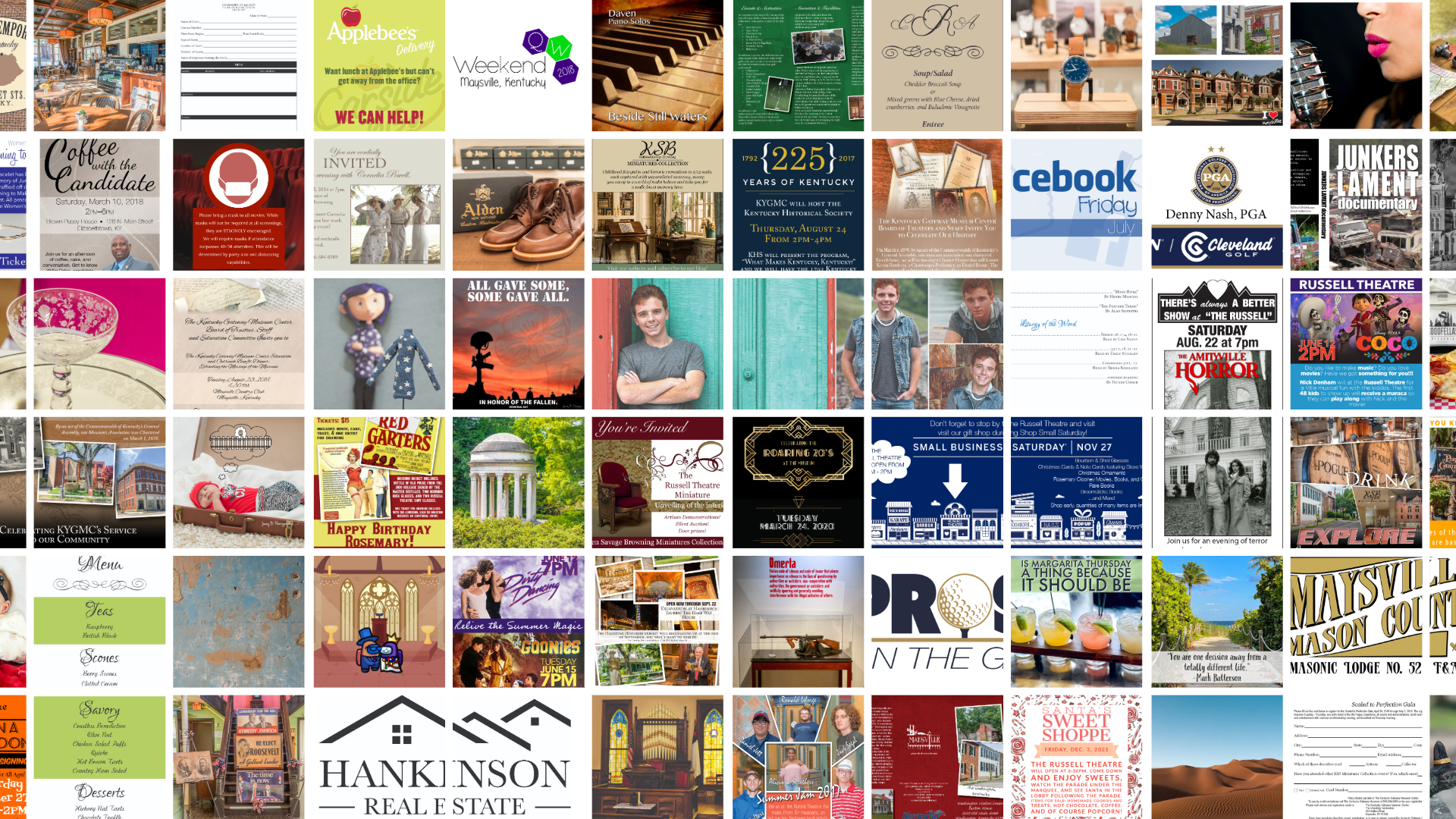 Click the image to see a variety of projects, arranged by type, spanning my career. These projects demonstrate my dedication to the client, brand, and versatility when creating similar pieces for different clients or purposes.